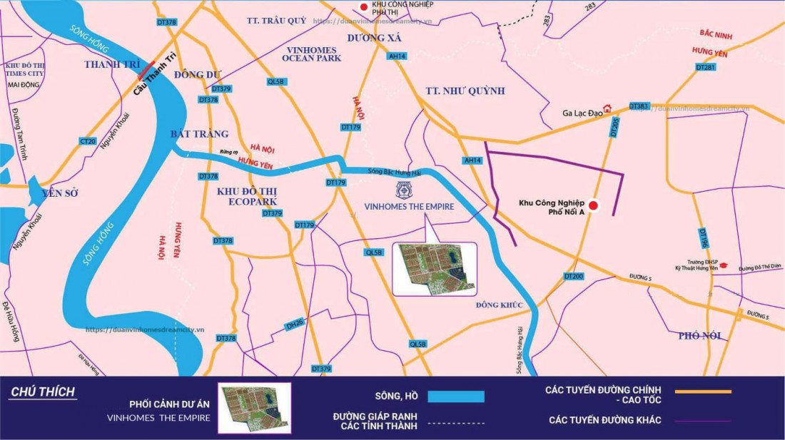Theo như kế hoạch ngắn hạn mà Vinhomes đã công bố gần đây. 3 siêu dự án ngoại thành Hà Nội sẽ được triển khai thi công gồm có VinHomes Đan Phượng, Vinhomes Cổ Loa và Vinhome Hưng Yên (tên chính thức là The Empire Vinhomes Ocean Park Hưng Yên). Trong đó, Vinhomes Hưng Yên đã được chủ đầu tư triển khai trước tiên.